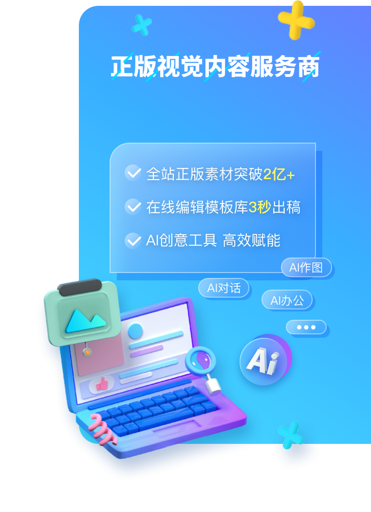 專屬定制一站式企業視覺服務,不限主體、用量、曝光及侵權賠付,支持全用途授權
